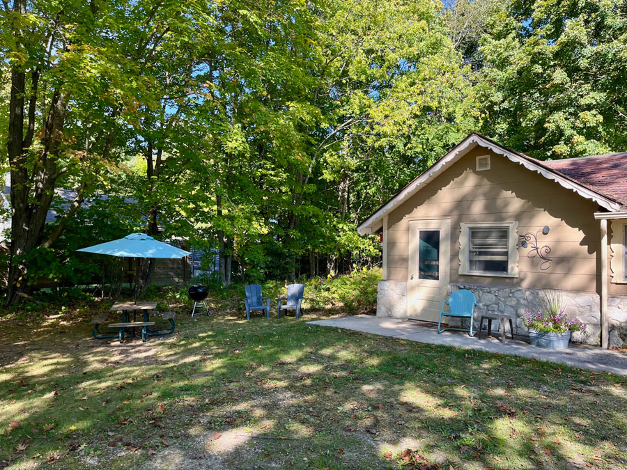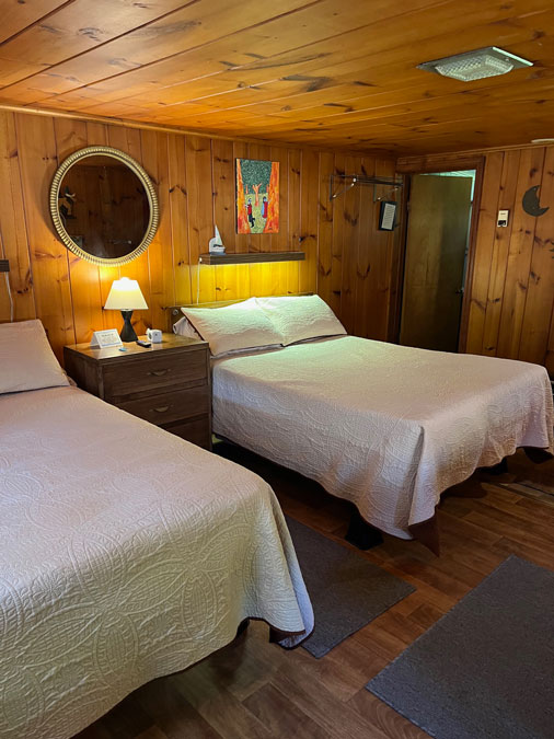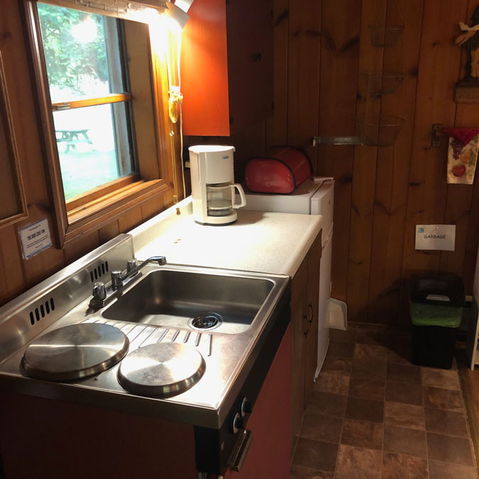 Cabin Description: Studio Style (sleeps 1-4) with 2 dbl beds. Galley style kitchen (grilling & regular utensils, glassware, cookware, dinnerware, 2-burner stove top, microwave & coffee maker), private bath with shower